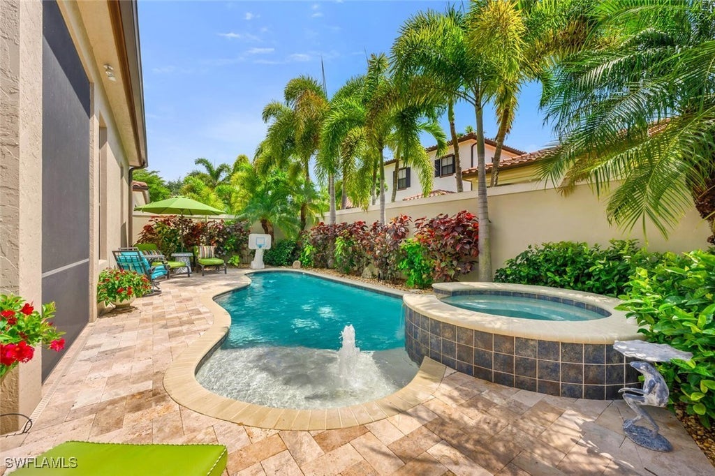 Welcome to this captivating 4 bedroom residence featuring the highly sought after sunny SW rear exposure location with tropical charm which imbues a touch of warm ambiance located in the exclusive gated enclave of Cordoba within Lely Resort. Built with attention to detail of high-quality construction including impact wind resistant windows and doors, new HVAC and heat pump with a 10 yr transferable warranty. This home's inviting gathering space features an open floor plan, creating a seamless flow between living, dining, and kitchen areas, perfect for entertaining and everyday living. The large windows flood the space with natural light, enhancing the airy, welcoming atmosphere. It's a space to connect, relax, and create lasting memories. Recently freshly painted walls, ceilings, woodwork and doors in the Great room, kitchen, master bedroom, laundry room, powder room and hallways. Step into your own private paradise where lush tropical landscaping meets luxurious outdoor living while lounging by the salt water pool. Escape to the main bedroom, a beautifully appointed space with ample room for a king-sized bed and furnishings, and a luxurious en-suite bathroom plus a spacious walk-in closet. Enter into the first floor beautiful guest bedroom suite with a Modern Key West motif which also has an en-suite bathroom. The soft lighting options creates a warm atmosphere, perfect for a relaxing evening. A peaceful oasis awaits on the second floor, imagine your guests relaxing in their own retreat, an additional second floor bedroom is versatile as this large space has the potential for various uses, such as a den, reading nook or exercise area. Immediate membership into The Players Club and Spa, no waiting list! Start enjoying the Naples Resort Lifestyle that you have been searching for.