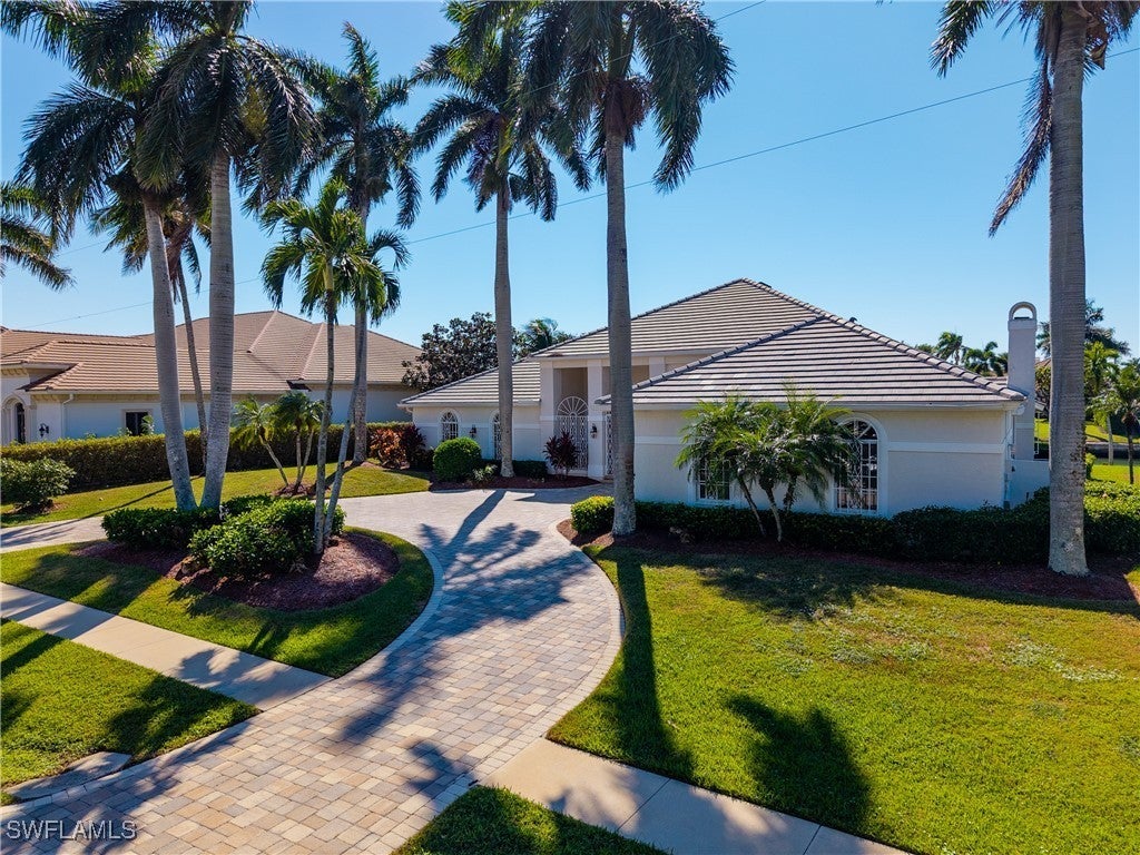 Located in a quiet cul-de-sac in the exclusive Marco Island Estates. This magnificent 4-bedroom, 3.5-bath, all brick construction home has oversized 2-car garage, and a circular drive lined with Royal Palms. Situated on a large lot with 125 feet of prime waterfront, this exceptional Divco, custom designed residence offers over 3,100 square feet under air and more than 3,800 total square feet of exceptional living space. The spacious home features soaring volume ceilings enhanced by exquisite custom moldings and features throughout. The kitchen serves as the focal point of the home with a center island, a breakfast bar, stainless steel appliances, and access to two dining areas and the family room. The luxurious master suite features spacious His and Her bedrooms with private sitting area, two large, oversized closets and master bathroom with Jacuzzi, dual vanities, shower and separate AC system. Home has separate formal dining room with bay view, and a breakfast area. Living room has fantastic water views and open to an impressive lanai with even better water views, multiple seating areas and resort style pool, hot tub and outdoor shower. Covered lanai extends the entire length of the home, enjoy year-round sunshine and spectacular sunsets. Boating and fishing enthusiasts will appreciate, great fishing in the deep-water canal, quick access to Robert’s Bay and the Gulf, placing world-class fishing waters and the 10,000 Islands just minutes away. Home features a new tile roof in 2022, 3 AC units, 2 new AC units in 2021, new seawall in 2016 and electric hurricane shutters. Boating and fishing enthusiasts will appreciate the space available to install docks and boat lifts. Additional amenities include a large, easily accessible air-conditioned storage space with easy accessibility above the garage, oversized laundry with storage, central vacuum system, sound system in all rooms and the lanai, built-in safe in the master closet. Marco Island's finest dining, shopping, and pristine beaches within minutes of this exceptional waterfront estate home.