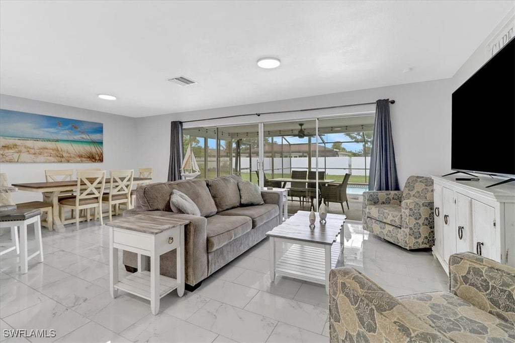 Welcome to 1510 SE 33rd St, a charming 3-bedroom, 2-bath pool home located in one of Cape Coral’s most desirable areas. Offering 1,317 square feet of living space, this residence is light and bright throughout, with tile flooring in every room for easy maintenance. The heart of the home is the beautifully remodeled kitchen featuring crisp white cabinetry, stainless steel appliances, and an eat-in dining area that seamlessly flows into the living room. From there, sliding glass doors open to the screened lanai, where you’ll enjoy a sparkling pool and plenty of space for relaxing or entertaining. This home is an excellent investment opportunity offered turnkey. Conveniently located near shopping, dining, and Cape Coral’s vibrant waterfront lifestyle, this property offers the best of Florida living. Recently replaced HVAC system, water heater, and plumbing. This home is like new!