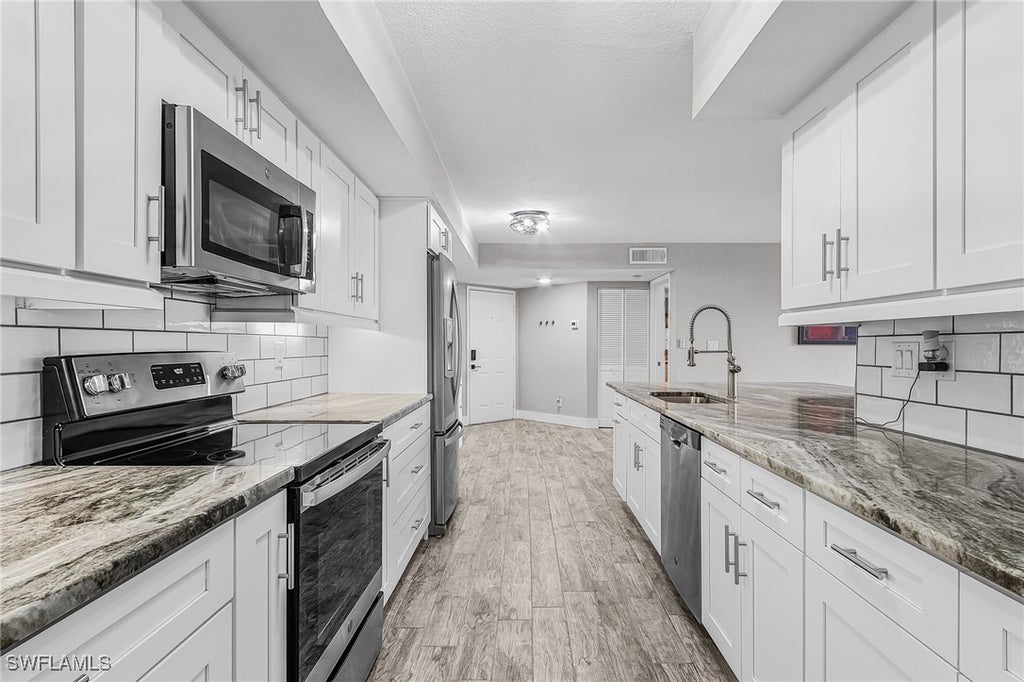 Discover modern living at its best in this beautifully renovated condo located in the highly sought-after Musa at Daniels community. This stunning home combines elegance, comfort, and convenience—perfect for homeowners or investors seeking a move-in-ready property in one of Fort Myers’ most desirable areas. Featuring updated kitchen cabinetry, Level 4 Grantee, brand-new A/C UNIT (September of 2025), stainless steel appliances, luxury plank tile flooring, Solid core doors thought out, undercabinet lighting and lake views!!! This condo offers a fresh, contemporary feel throughout. The open-concept design seamlessly connects the spacious living and dining areas, leading to a private screened lanai that is ideal for relaxing or entertaining. The primary suite offers a tranquil retreat, featuring a walk-in closet and an updated en-suite bathroom. Residents of Musa at Daniels enjoy resort-style amenities including two swimming pools, tennis courts, a fitness center, a clubhouse, and beautifully landscaped grounds. The community is centrally located—just minutes from shopping, dining, beaches, RSW Airport, and I-75. Adding even more value, enhancing convenience for residents. Additionally, this property offers a 4% VA assumable interest rate loan, providing an exceptional financing opportunity for qualified buyers seeking to benefit from lower monthly payments. Don’t miss your chance to own this exceptional condo in one of Fort Myers’ friendliest and fastest-growing neighborhoods. Schedule your private showing today to experience all that Musa at Daniels has to offer!