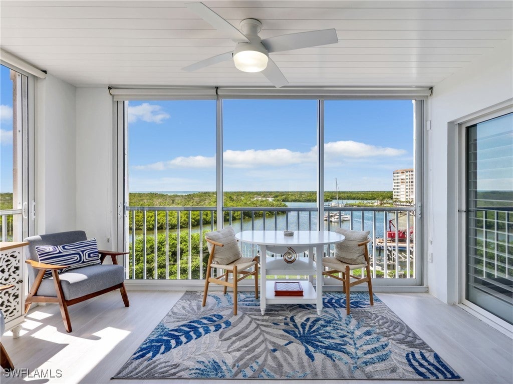 Sophisticated living and a fully renovated 6th floor END UNIT condo with direct gulf Access, no bridge. Experience the ultimate in luxury coastal living with this completely reimagined residence at the prestigious Marina Bay Club of Naples. Renovated from top to bottom in 2023, this designer-finished condo offers a rare opportunity to own what feels like a brand-new condo in one of North Naples’ most desirable waterfront and boating communities. Step inside to a bright, open-concept living space flooded with natural light, highlighted by impact-rated windows and doors, plantation shutters, and premium finishes throughout. The chef-inspired kitchen features elegant quartz countertops, newer stainless-steel appliances (2022), and sleek modern cabinetry, a perfect balance of form and function. Retreat to the tranquil primary suite with a custom-designed closet system and a spa-like bathroom. Every detail has been curated for comfort, style, and longevity. Enjoy uninterrupted sunset views, along with the convenience of a private under-building garage space, ample guest parking, and a private storage closet for your beach essentials. For the boating enthusiast: direct deep-water Gulf access via Wiggins Pass, Marina Bay Club is a hidden gem for boaters. Slips are available for lease or purchase placing you minutes from the open waters. Unmatched location: Ideally situated just off Vanderbilt Beach Road, you are minutes from sugary white sand beaches, Mercato’s upscale dining and shopping, Artis–Naples, and the best of North Naples. Marina Bay Club of Naples has front desk security and on-site personnel for peace of mind, is a GATED community that offers resort-style living with a sparkling heated pool and spa for relaxation, welcoming club room with regular community events, cozy fire pit perfect for family s’mores night, tennis courts with pickleball for active living, kayaking, paddle boarding. ***** THERE ARE TWO VIRTUAL TOUR LINKS YOU CAN CLICK ON FOR MORE INFORMATION. *****