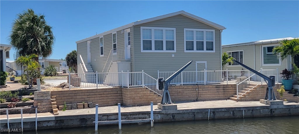 NEW CANAL FRONT JACOBSEN BUILT HOME in a Gulf Access Community!!! Move in Ready as of May 2025. The home is elevated to meet the new codes & Fema Flood Guidelines. As you enter, there is an intimate open-floor plan for entertaining or just relaxing. The living/dining/kitchen area has drywall with recessed LED lighting, cathedral ceilings, crown molding and opens to a 10 X 24 feet Veranda Room with double French Doors which adds 240 square feet of living area/ office/ guest sleeping/ exercise or reading room that overlooks the water! The spacious kitchen features white wood cabinets, pantry, and a large center island that provides a friendly spot for a quick snack or meal preparation. The master suite is designed for convenience and comfort, with an attached bath, walk-in closet, and generously sized linen closet. A second full bath lies directly across the hall from the second bedroom for the convenience of your guests. The laundry room has the optional cabinet/folding table. This amenity rich community has an active clubhouse w/ planned activities, pool, hot tub/spa, tennis, pickle ball, shuffleboard, basketball, boccie ball. The community park offers a picnic area, tiki hut w/ swings, & fresh water fishing on the lake pier and community kayaks for residence & guests. Sunset Park lives up to its name by showing off colorful tropical sunset skies and is a favorite place for residents to gather on golf carts. The community proudly presents direct access into Estero Bay then into the Gulf of Mexico from the private boat ramp for all residents to use. Once on the water there is fishing, shelling, beaches, waterfront restaurants and watching dolphins, and sunsets before returning home in minutes! Spring Creek Village has a convenient location. Coconut Point Mall and the new Lee Health at Coconut Point are just minutes away. The Hertz Sports arena, restaurants, shopping, public golf courses, FGCU, Fort Myers International Airport are all close by.