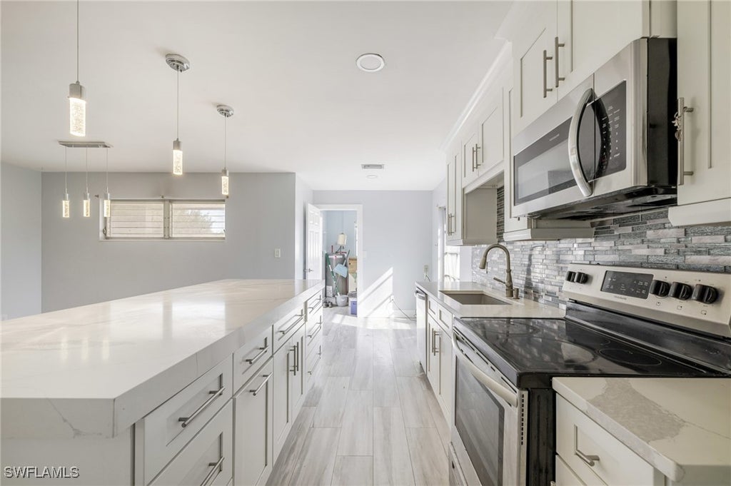 NO FLOOD ZONE! NO HOA! NO WATER BILL! Enjoy the freedom and savings that come with this charming Lehigh Acres home located on a quiet street with endless potential. Featuring 2 bedrooms, 2 bathrooms, and a flex room perfect for a home office, den, or guest space(can be converted to a third bedroom) this property offers both comfort and versatility. Step inside to an open-concept living area filled with natural light, vinyl plank flooring, and a modern kitchen complete with granite countertops, stainless steel appliances, and a large island ideal for entertaining or everyday dining. Outside, the spacious backyard is surrounded by a 6-foot privacy fence, offering the perfect setting for outdoor gatherings, pets, or even a future pool. There’s also a storage shed, screened-in patio, and plenty of room for boats, trucks, or trailers with easy side access. This property presents a fantastic opportunity for first-time homebuyers looking for a move-in ready home with room to grow, or for investors seeking a rental-ready property with strong income potential. With just a few finishing touches, you can add instant equity and make this well-maintained home your ideal primary residence or investment opportunity.